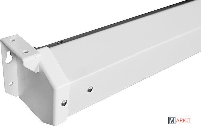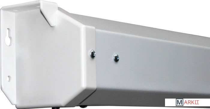 Длина кабеля 5м. Кабель оснащен электрическим переключателем для управления экраном.Мощность электропривода 18 Вт, скорость вращения двигателя 15 об./мин.Корпус экрана шестиугольного сечения выполнен из стали с белым полимерным покрытием. Торцевые заглушки корпуса изготовлены из ударопрочного белого пластика.Нижняя натяжная стальная планка круглого сечения диаметром 13 мм с белым полимерным покрытием.Материалы полотна экрана экологически безопасны, полностью удовлетворяют требованиям пожарной безопасности к строительным материалам и компонентам.