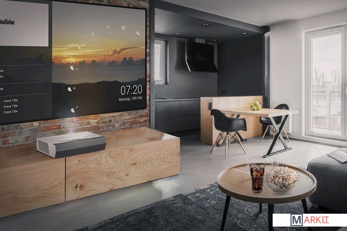 - пульт ДУ- кабель для зарядки пульта ДУ- кабель питания проектора- прокладки для ножек проектора- документация |