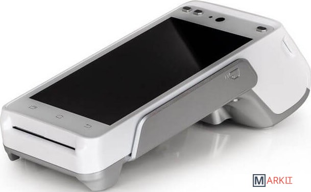 Переносной терминал-кассовый аппарат со встроенным Wi-Fi и Bluetooth, двойной камерой, которая может читать 1D и 2D коды, и аккумулятором высокой емкости.