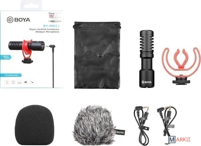 - съемная ветрозащита- два аудиокабеля (3.5 мм - 3.5 мм)- антивибрационный держатель- чехол- документация |