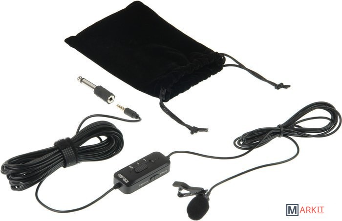 Микрофон предназначен для записи звука при съемке смартфоном, видеокамерой, и другими устройствами с использованием разъемов 3,5мм mini-Jack и адаптера 6,3 мм Jack. Присоединяется ко входу для наушников мобильных устройств, совместим со смартфонами на базе iOS и Android (совместимость с конкретными моделями требуется уточнить в инструкции к телефону). Может использоваться в качестве «радиопетлички» в составе радиосистемы.На батарейном блоке расположены переключатель положения смартфон/камера, индикатор питания, индикатор заряда, микро-USB порт зарядки, функциональный переключатель для работы в условиях ветровых и других низкочастотных помех.Съемная металлическая клипса надежно закрепляет микрофон на любую одежду – от ворота шелковой блузки до лацкана пиджака. При необходимости скрыть микрофон заменяется креплением на теле прозрачной клейкой лентой-тейпом или самоклеющимся стиком (в комплект не входит).Защитный чехол-мешок в комплекте.