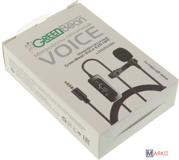 Микрофон петличный GreanBean Voice E2R HPFАдаптер 6,3мм JackМеталлическая клипсаВетрозащитный колпачокЧехолРуководство по эксплуатации и гарантийный талон