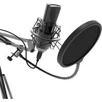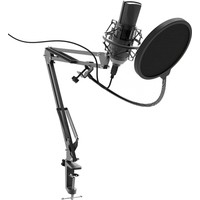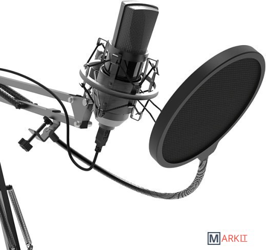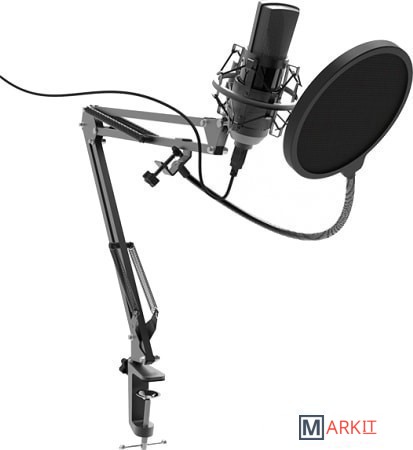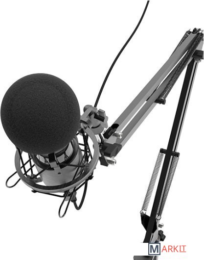 Конденсаторный микрофон с 16 миллиметровой диафрагмой на стойке-пантографе со струбциной, позволяющей закрепить устройство на столе или любой другой плоской поверхности. Предназначен для деятельности в таких сферах как: skype, звукозапись, игры, стриминг.