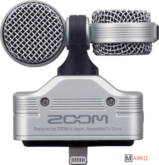 Zoom iQ7 – это стереофонический конденсаторный микрофон, подходящий для записи музыки по технологии Mid-Side, и обладающий компактными размерами для подключения его к коннектору Lightning на iPhone, iPad или iPod Touch.iQ7 включает в себя два микрофонных элемента: направленный микрофон, который захватывает сигнал непосредственно напротив вашего устройства (Mid) и двунаправленный микрофон, который захватывает аудио с двух сторон (Side).Трехпозиционный переключатель дает вам выбор между 90-градусным положением (для фокуса на звуках, исходящих из центра) и 120-градусным (для более широкого захвата, включая фоновой шум в помещении). Третье положение называется “M-S”, оно позволяет вам записывать чистое аудио и настраивать ширину его стерео-поля уже после записи, используя приложение Handy Recorder для iOS.