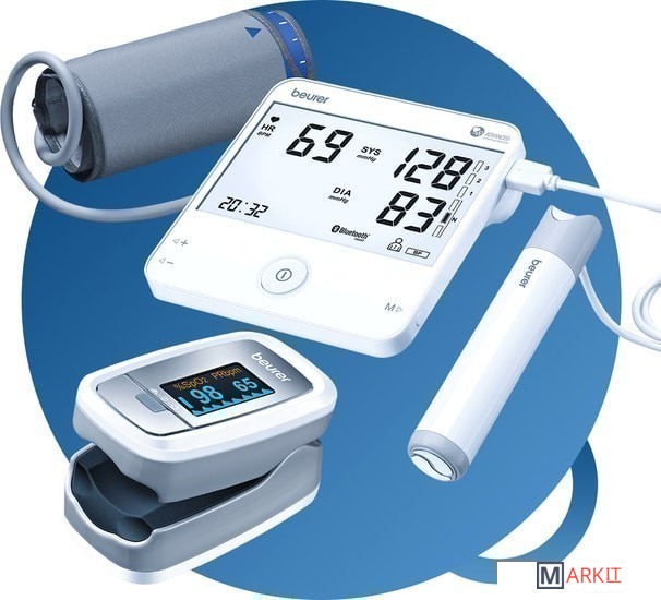 В набор входят:1. Пульсоксиметр Beurer PO 30настраиваемая яркость дисплея;цветной дисплей с 4 режимами;графическое отображение пульса;удобен в дороге;7 форматов дисплея;индикатор заряда батареи;2. Тонометр на плечо Beurer BM 95 с функцией измерения ЭКГhttps://catalog.onliner.by/tonometers/beurer/bm95выявление аритмии;универсальный размер манжеты (22 - 42 см);встроенная пользовательская память – 2 х 60 измерений;автоматическое отключение при бездействии;контроль и отображение уровня заряда/разряда батареи;настройка звукового сигнала;работа с бесплатным приложением СardioExpert;регистрация нормальной ЭКГ;указания на сниженную/ повышенную частоту сердечных сокращений (брадикардия/ тахикардия);указание на одну или более пауз сердечного цикла, которые длятся более 2 сек;указание на нарушение ритма во время записи ЭКГ, что может свидетельствовать о суправентрикулярной или желудочковой аритмии;указание на измененную форму кривых электрокардиограммы.