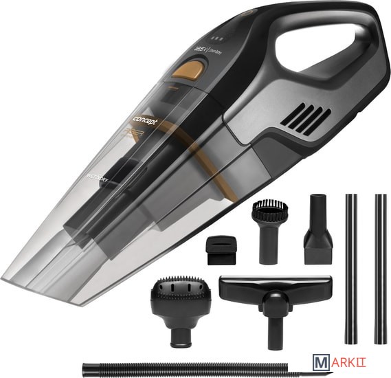 Ручной пылесос Concept VP4353 Riser для сухой и влажной уборки отличается высокой мощностью всасывания и поможет вам выполнить быструю и эффективную уборку дома и в автомобиле. У него есть специальная ПЭТ-щетка для обработки шерсти вашего пушистого питомца.Пылесос VP4353 оснащен практичной удлинительной трубкой, благодаря которой вы легко можете превратить его в стержневой пылесос. Таким образом, вы сможете с комфортом собрать мелкую грязь на полу, не наклоняясь и не дотрагиваясь до классического пылесоса.Очистить машину между сиденьями или в труднодоступных местах станет игрушкой с помощью гибкого автомобильного шланга. Индикация состояния батареи.Сила всасывания: 7,5 кПа.Аксессуары:Щетка ПЭТНасадка для полаУдлинитель (2 шт.)Гибкий автомобильный шлангЩелевое соплоНасадка для вакуумирования жидкостейНасадка с кисточкойТекстильная сумка для аксессуаровЩетка для чисткиАдаптер