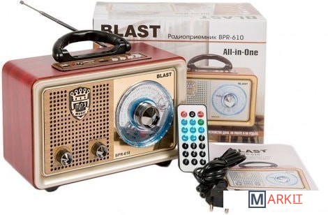 Благодаря широкому набору функций радиоприемник BLAST BPR-610 готов обеспечить чистым звучанием со всевозможных источников звука: USB-флэшка, карта памяти microSD или AUX IN. Трехдиапазонный (FM/AM/SW) радиотюнер всегда будет держать вас в курсе событий. Встроенная телескопическая антенна обеспечит уверенный прием даже самых удаленных радиостанций. Радиоприемник обладает возможностью работы от 4 источников питания: встроенный аккумулятор на 1200мА, встроенный сетевой адаптер питания от переменного тока 220В, 2-х батареек типа D(R20), а так же при подключении внешнего адаптера питания с постоянным током 5В и разъемом USB. Все это позволяет использовать его как в стационарных, так и в мобильных условиях. В комплекте с радиоприемником идет дистанционный пульт управления, который позволит контролировать большинство функций приемника на расстоянии.