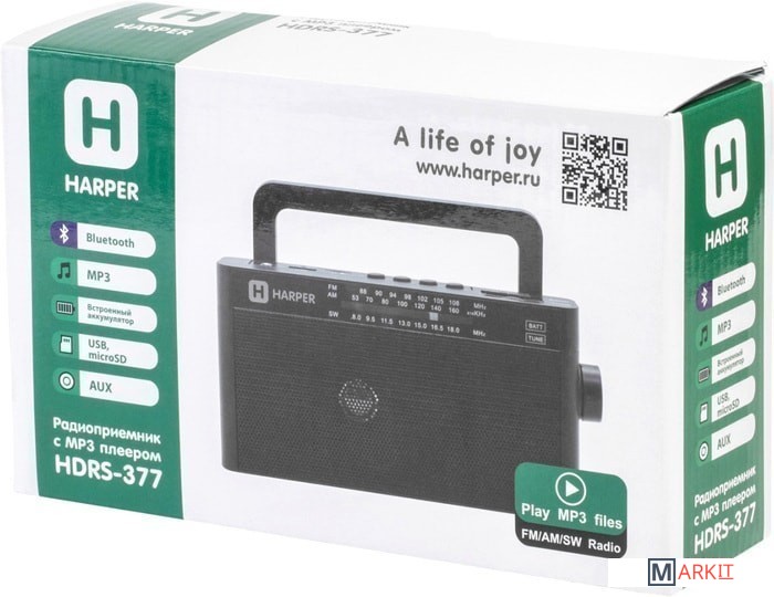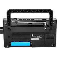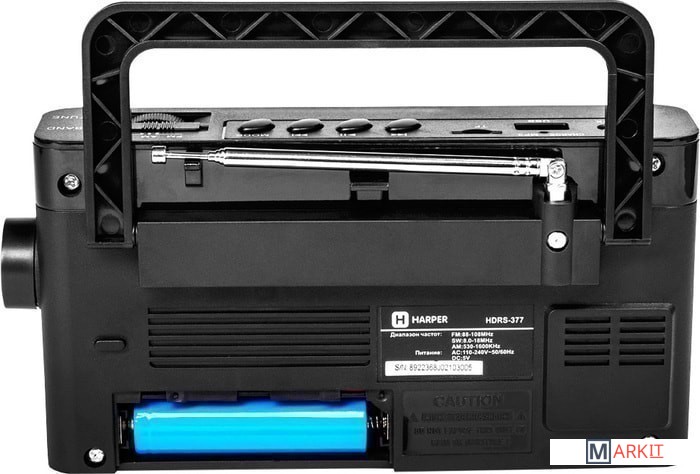 Радиоприемник оснащен одним динамиком 89 мм с номинальным сопротивлением 6 Ом. Частота приема FM-сигнала 88-108 МГц, AM-сигнала 530-1600 КГц, SW-сигнала 8-18 МГц. В комплект поставки входит кабель питания.