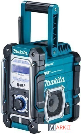 Приемник аналоговых и цифровых станций с универсальным питанием от аккумуляторов Макита 7,2 ...18 В и от сети. Ударопрочная конструкция, защита от пыли и брызг, канал Bluetooth и зарядка для смартфоновКомпания Макита давно производит не только инструмент, но и разнообразные гаджеты – от фонариков до курток со встроенной системой охлаждения. Есть в линейке её продукции и радиоприемники, и очередная модель Makita DMR112 наверняка привлечет внимание потребителей.Связано это с целым букетом новшеств, которые в совокупности выводят этот товар в категорию уникальных. Это не только возможность слушать музыку и новости в любых условиях, ведь корпус приемника защищен от брызг и пыли по IP64. Такими способностями обладали и предыдущие модели. Радио Makita DMR112 предоставляет пользователю и другие важные преимущества:прием аналоговых FM и цифровых DAB станций;может использоваться как проигрыватель музыки со смартфона с беспроводной связью по «Блютуз»;усиленный ударопрочный корпус с эластомерным бампером;стереозвук большой мощности;удобная ручка для переноски и компактность – максимальный размер не превышает 29 см;возможность проводного подключения источника звука – разъем AUX-IN;гибкая складная антенна;возможность обновления ПО через разъем микро-USB;можно использовать как ЗУ для смартфона или планшета – выход USB с нагрузкой до 1,5 А;абсолютная универсальность питания.Радиоприемник Makita DMR112 предоставляет возможность установки в него практически любого литиевого аккумулятора Макита серии BL. Напряжением от 7,2 до 18 В и в любом исполнении. Поэтому в комплект поставки гаджета аккумулятор и ЗУ не входят, а его обладатель может воспользоваться и питанием от сети через адаптер. Гнездо с маркировкой DC предусмотрено.В числе достоинств приемника Makita DMR112 – яркий информативный дисплей с подсветкой. Особенно видно это при приеме цифровых станций. На нем отображается не только их название, но и тип программ, а также номер канала, частота, битрейт и мощность принятого сигнала. Разумеется, время и дата. Отображаются они и при приеме классического FM с RDS.Поиск станции, настройка и сохранение в памяти приемника Makita DMR112 затруднений у пользователя не вызовут. Они интуитивно понятны и аналогичны принятому в других моделях радиоприемников этой компании. Есть кнопка BAND для выбора диапазона, а регулятор громкости используется для настройки на нужную частоту. Все особенности эксплуатации подробно описаны в инструкции.При выборе режима Bluetooth поиск и захват источника звука в приемнике Makita DMR112 производится автоматически, предусмотрена и индикация соединения, а также сохранение в памяти 8 устройств. Столько же языков поддерживается интерфейсом устройства. Из славянских только один – польский.Выбирая для этого гаджета аккумулятор, следует помнить, что от его напряжения зависит звуковая мощность. При установке блока BL7010 её значение будет полватта, а для блоков BL18XX – возрастет до 3,5 Вт.Выходная мощностьпри 7.2В - 0.5Вт х2 при 9.6В - 1Вт х2 при 10.8В - 1.2Вт х2 при 12В - 1.5Вт х2 при 14.4В - 2.2Вт х2 при 18В - 3.5 Вт х2