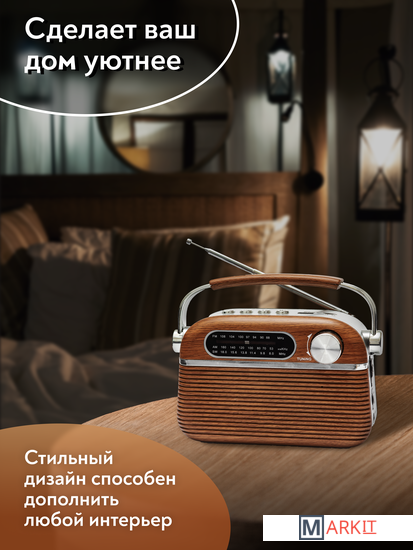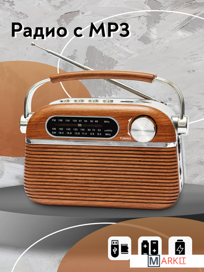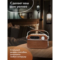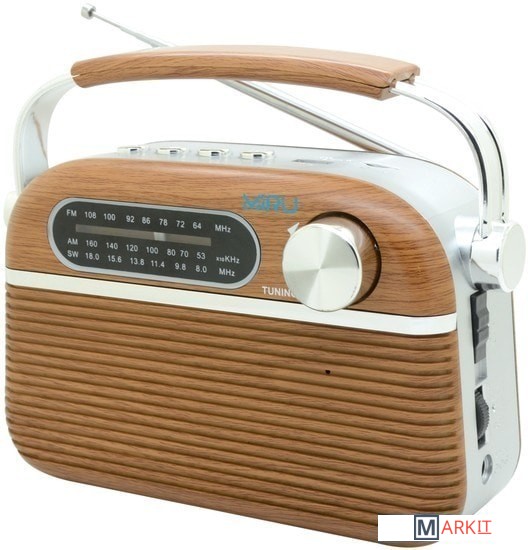 Радиоприемник MIRU SR-1007 коричневого цвета имеет ретро дизайн, простой функционал и обеспечивает приём сигналов в диапазоне FM, AM и SW. Аналоговый способ настройки частоты предполагает более точное и быстрое улавливание нужного канала. Для улучшения качества сигнала у радиоприемника имеется поворотная телескопическая антенна. Радиоприемник SR-1007 может работать как от сети 220В, так и от двух батареек типа R20(D). Устройство оснащено удобной, складывающейся ручкой, благодаря чему его будет легко переносить. Органы регулировки громкость и смена диапазонов расположенны на боковой панели приемника. Также предусмотрено проигрывание с USB и microUSB накопителей. Данный радиоприемник отлично подойдет для туристов, дачников и просто любителей отдыха на природе.