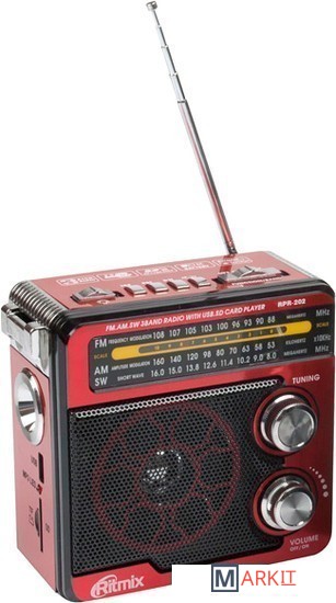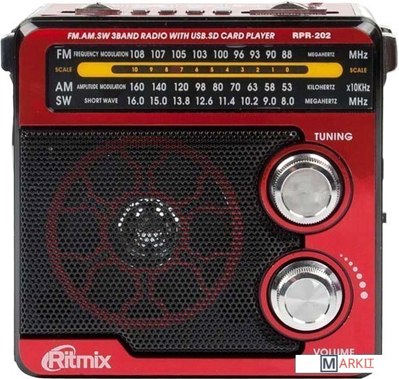 Ritmix RPR-202 – портативный трехдиапазонный радиоприёмник. Устройство работает на трех диапазонах, включая FM. Дополнительная функция RPR-202 – воспроизведение mp3-файлов с карт памяти или USB-флэшки.