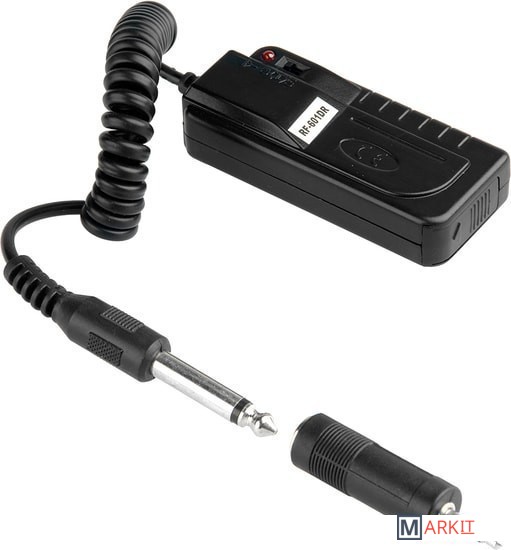 RF-601DR - дополнительный приемник для комплекта радиосинхронизации RF-601DR, предназначен для "поджига" дополнительной студийной вспышки.Радиоприемник работает от двух батарей типа ААА, что обеспечивает безопасность использования, а низкое потребление энергии позволяет непрерывно производить до 30 000 запусков вспышки. Сигнал передается на осветитель по синхрокабелю с разъемом джек 6.3 мм (в комплекте переходник на мини-джек 3.5 мм). Приемник невосприимчив к помехам, имеет низкое потребление энергии и короткое время реакции. Выполняя декодирование с помощью интегральной схемы, имея высокую устойчивость к помехам и высокую скорость синхронизации, равную 1/1000 с, радиоприемник удовлетворяет всем требованиям к синхронизации камер. Рабочая частота 315 МГц, Дистанция до 50 м (на открытом пространстве)Особенности:- беспроводное управление- удобная эксплуатация- низкое потребление энергии- экономия энергии- низкое напряжение запуска- независимая работа каналов- отсутствие помех
