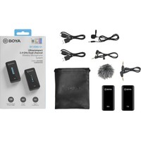 - петличный микрофон- передатчик- приемник- комплект аудиокабелей 3.5 мм- комплект зарядных кабелей- съемная ветрозащита- чехол- документация |