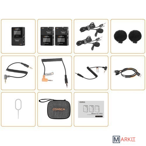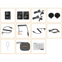 | Комплект поставки | - приемник- два передатчика- два петличных микрофона- съемная ветрозащита- набор TRS кабелей- кабель для зарядки- чехол- документация |