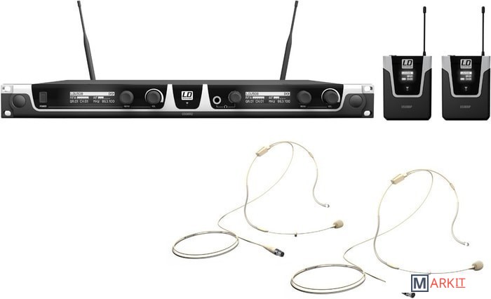 | Состав комплекта | два портативных передатчика, настольный приемник, два головных микрофона |