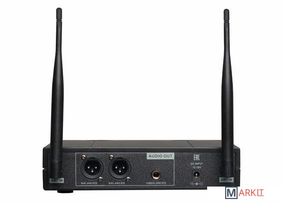 | Комплект поставки | - два головных микрофона- два передатчика- настольный приемник- небалансный аудиокабель 1/4" (6.3 мм)- адаптер питания- четыре батарейки стандарта AA- документация |