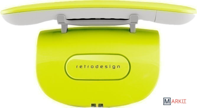 Новое дизайнерское решение: DECT, воплощенный в стилизованном под дисковый телефон корпусе, предлагается в трех цветах: ультрамодном фисташковом и в классических черном и белом.
