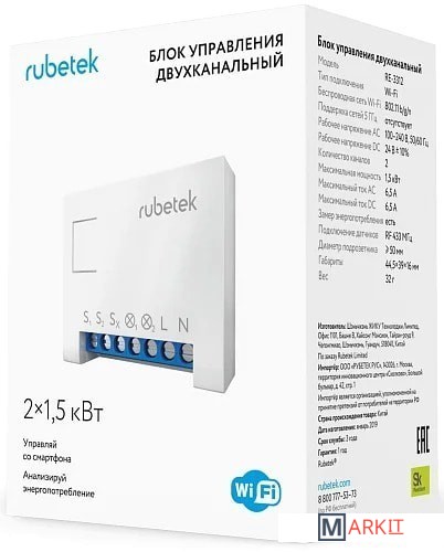 Блок управления освещением и бытовыми приборами двухканальный Управляет двумя независимыми нагрузками мощностью до 1,5 кВт каждая и предназначен для скрытого монтажа в подрозетнике. Функция измерения электроэнергии покажет мгновенную мощность и энергопотребление за заданный период. Блок поддерживает подключение внешних датчиков безопасности, может быть использован в качестве контроллера теплого пола или базы системы сигнализации .Блок управления имеет функцию Smart Link и является центром управления умным домом, что дает возможность подключения до 64 устройств: датчики дыма, газа, движения, протечки, открытия, разбития стекла, температуры и влажности, — и управления ими с телефона.Ручное включение/ выключение (с помощью кнопки на корпусе)Дистанционное включение/ выключение из приложенияМониторинг энергопотребления (в кВт, рублях, за период)Энергопотребление подключенного прибора в реальном времени в приложенииЯвляется хабом для подключения радио устройствВыходная мощность 2x 1.5 кВтМаксимальный ток нагрузки для выхода DC 6,5A на каналФункция Smart Link до 64 датчиков (RF 433 МГц)Габариты 44,5 x 39 x 16 ммПодрозетник для монтажа Ø ≥ 50 мм