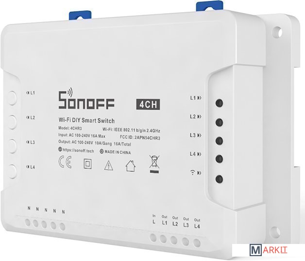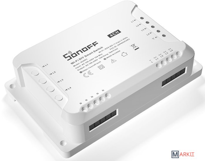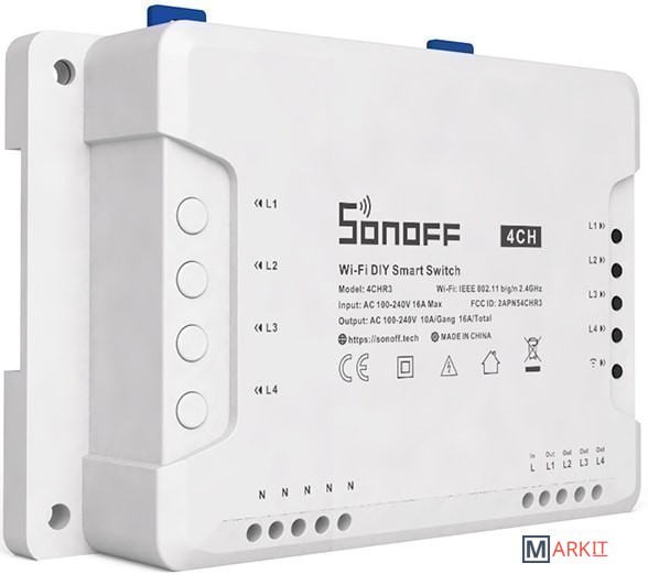 Sonoff 4CH (R3) - это обновленная версия Sonoff 4CH (R2). В настоящее время Sonoff 4CH (R2) снята с производства. В версии Sonoff 4CH (R3) изменен внешний вид и улучшены конструкционные особенности. К примеру: Sonoff 4CH (R3) стал более «компактным», и получил более удобный доступ к креплению проводов. Так же стоит обратить внимание и на другое новое улучшение в Sonoff 4CH (R3) по сравнению с версией Sonoff 4CH (R2) – для удобства использования в Sonoff 4CH (R3) Вы сможете установить все 3 рабочих режима в приложении «eWeLink».Sonoff 4CH (R3) - это умное 4-канальное Wi-Fi реле которое позволит Вам одновременно управлять четырьмя разными устройствами. Приобретая Sonoff 4CH (R3) Вы получаете функционал четырех базовых модулей Sonoff с Wi-Fi в одном устройстве и под единым управлением.Кроме того Sonoff 4CH (R3) имеет возможность для монтажа на DIN-рейку. Корпус Sonoff 4CH (R3) специально предназначен для установки на DIN-рейку - на корпусе имеются специальные удобные защелки для DIN рейки! DIN-рейка - это стандартизированное металлическое крепление, общепринятое для установки промышленного электрооборудования в специальных монтажных ящиках. Эти рейки, как правило, изготавливаются из углеродистой стали с цинковым покрытием и имеют стандартный типоразмер, подходящий и для этого модуля.Управление Sonoff 4CH (R3) может происходить как через приложение «eWeLink» установленное на Вашем телефоне или планшете, так и с помощью голосового управления через Amazon Alexa или Google Assistant.Вместе с поддержкой «умных сцен» можно настроить, чтобы включая это устройство, также включалось множество других умных Wi-Fi устройств. Для ситуаций, когда Wi-Fi не работает, предусмотрено управление через локальную сеть.Sonoff 4CH (R3) так же является открытым и простым для разработчиков электронных устройств. Доступны исходные коды всех прошивок, которые Вы можете переделывать, дополнять по Вашему усмотрению, и с лёгкостью обновлять прошивку в купленных Вами устройствах Sonoff. Устройство сделано на основе Wi-Fi микроконтроллера ESP8285, для которого Вы так же можете найти открытую и полную документацию.Для управления Sonoff 4CH (R3) Вы можете бесплатно скачать приложение «eWeLink» для устройств Apple из App Store и для устройств Android из Google Play. Приложение «eWeLink» работает через любое интернет соединение.- Кол-во каналов: 4 шт.;- Максимальный ток нагрузки: 15A (все подключенные устройства)/10A (1 подключенное устройство);- Максимальная мощность: 3500W (все подключенные устройства)/2200W (1 подключенное устройство);- Протоколы безопасности: WEP/WPA-PSK/WPA2-PSK;- Габаритные размеры: 145х90х34 мм.