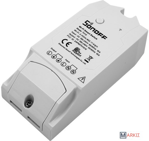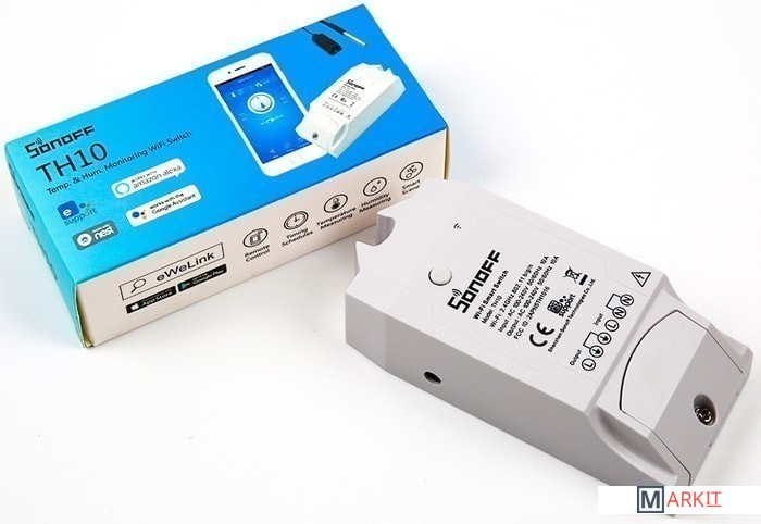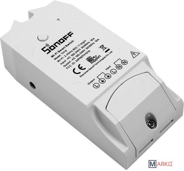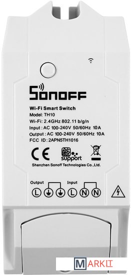 Sonoff TH10 - это умное Wi-Fi реле, с функцией мониторинга температуры и влажности (датчики в комплект не входят и приобретаются отдельно), которое позволяет удаленно контролировать и устанавливать температуру и влажность, для включения/выключения электроприборов.Sonoff TH10 позволяет дистанционно вести непрерывный мониторинг температуры и влажности в реальном времени. Указав на определённый желаемый диапазон температуры или влажности в Вашем доме, Вы сможете автоматически включать/выключать Ваши электроприборы (например: кондиционер, нагреватель или увлажнитель воздуха), для поддержания/сохранения температуры и влажности в указанном Вами диапазоне.Управление Sonoff TH10 осуществляется с помощью приложения «eWeLink» установленном на Вашем телефоне или планшете. Так же Вы так же сможете управлять Sonoff TH10 удаленно (Вы сможете управлять Sonoff TH10 из любой точки мира, где Вы сможете получить доступ к сети интернет). В приложении «eWeLink» Вы можете поделиться Вашим устройством с Вашей семьей, чтобы они так же могли управлять этим устройством.Кроме того в приложении «eWeLink» Вы можете создавать простые алгоритмы («Smart Scene») для взаимосвязанного включения/выключения других модулей Sonoff, и далее использовать эти данные, для включения/выключения других модулей Sonoff, таких как Sonoff Basic, Sonoff RF, Sonoff SV, Sonoff S20, установленных в том же аккаунте «eWeLink».Sonoff TH10 прекрасно работает с электрическим вентилятором, кондиционером, увлажнителем воздуха, умным аквариумом, системой полива и прочими подобными устройствами.Для управления Sonoff TH10 Вы можете бесплатно скачать приложение «eWeLink» для устройств Apple из App Store и для устройств Android из Google Play. Приложение «eWeLink» работает через любое интернет соединение.Sonoff TH10 и Sonoff TH16 поддерживают три типа датчиков температуры и влажности - это Si7021, AM2301 и DS18B20.Датчик DS18B20 – это водонепроницаемый датчик, но измеряет только температуру. Другие датчики - Si7021 и AM2301 могут измерять как температуру, так и влажность. - Максимальный ток нагрузки: 10A;- Максимальная мощность: 2200W;- Беспроводная связь: Wi-Fi 2.4GHz b/g/n;- Протоколы безопасности: WEP/WPA-PSK/WPA2-PSK;- Габаритные размеры: 114х52х32 мм.