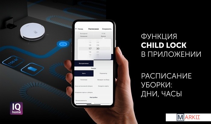 | Функциональные особенности | локальная уборка, выбор траектории движения, уборка по расписанию, автовозврат на базу |