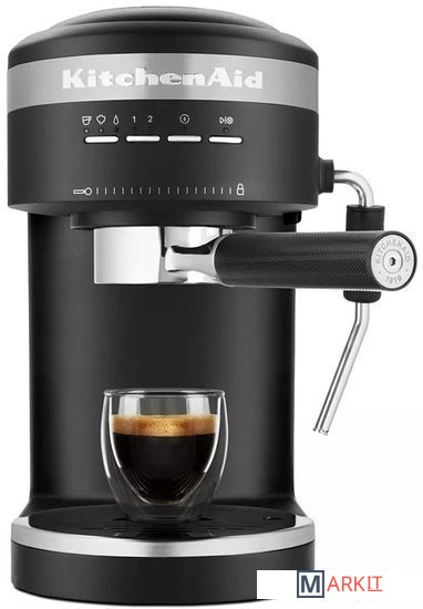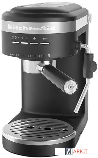 Кофеварка Espresso KitchenAid, Artisan рожкового типа в считанные минуты сделает для вас ароматный и бодрящий эспрессо. Емкость резервуара для воды составляет 1.4 л, что позволяет за один раз приготовить сразу несколько чашек любимого напитка. А если вас отвлек важный телефонный разговор или срочно пришлось уйти из дома, не переживайте - кофе не остынет: в приборе предусмотрены специальные функции сохранения тепла и подогрева чашек.