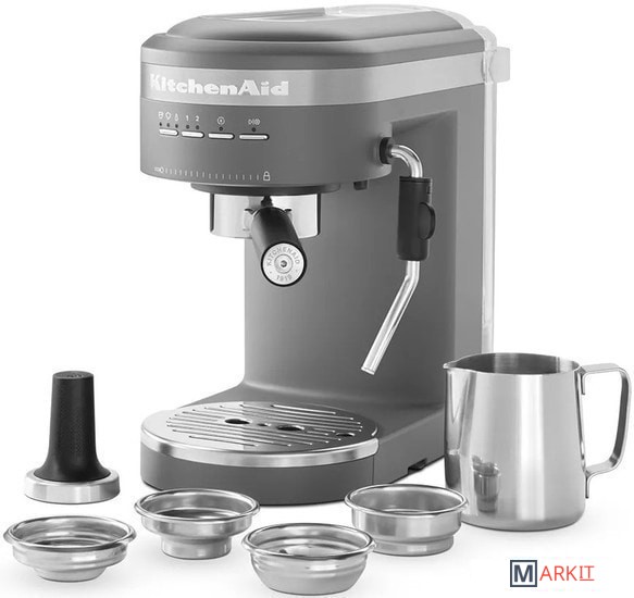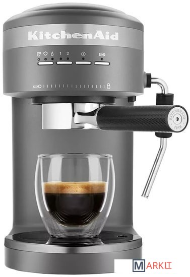 Кофеварка Espresso KitchenAid, Artisan рожкового типа в считанные минуты сделает для вас ароматный и бодрящий эспрессо. Емкость резервуара для воды составляет 1.4 л, что позволяет за один раз приготовить сразу несколько чашек любимого напитка. А если вас отвлек важный телефонный разговор или срочно пришлось уйти из дома, не переживайте - кофе не остынет: в приборе предусмотрены специальные функции сохранения тепла и подогрева чашек.