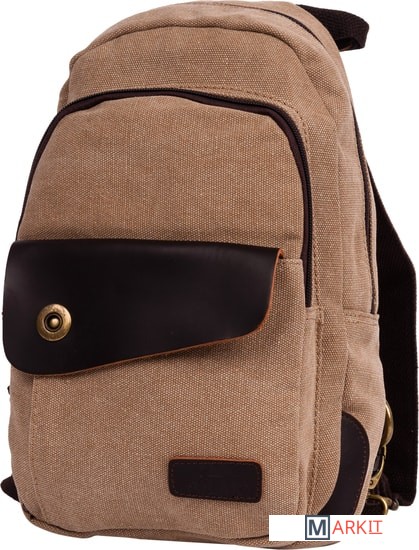 Маленький и очень удобный рюкзак из брезента фирмы Polar. Основное отделение закрывается на молнию, внутри которого один карман на молнии и один открытый карман. Спереди вместительный накладной карман на молнии и небольшой карман под клапаном на магнитной кнопке. На задней стенке карман на молнии. Данный рюкзак можно носить как сумку через плечо, если соединить лямки вместе встроенной молнией и перестегнув карабины к встроенному креплению внизу рюкзака. Сверху удобная и прочная ручка для переноски рюкзака в руке.