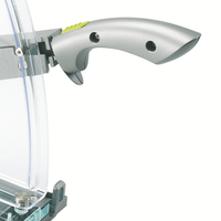 Примечание Сабельный резак ClassicCut CL410 обеспечивает максимальную точность резки с помощью встроенного красного лазера. Красный лазерный луч покажет на бумаге, где опустится лезвие ножа. Луч работает от 2-х батареек ААА, которые поставляются в комплекте. Основание резака сделано из прочного прозрачного акрила, на который нанесена разметка форматов бумаги и метрическая линейка. ClassicCut CL410 разрезает до 25 листов за один раз, А4 формат. Специальная ручка для переноса резака. Акриловый экран и фиксатор лезвия, размещенный на ручке ножа, обеспечивают безопасность при использовании резака. Регулируемый упор для бумаги поможет выровнять листы с левой стороны.