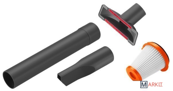| Комплектация | трубка для насадок для увеличения радиуса действия, короткая щелевая насадка, щетка для мебели, HEPA фильтр от пыли. |