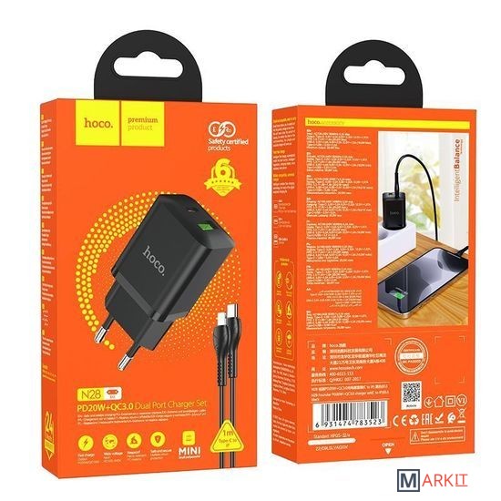 Markit » Зарядные устройства » Сетевое зарядное Hoco N28 Lightning (черный)