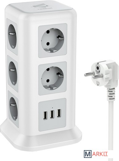 Сетевой фильтр с 11 розетками 220В, 3 USB портами и кнопкой питания. Компактный дизайн. LED индикатор. Защита от перегрузки и скачков напряжения. Огнеупорный материал корпуса. Высококачественный медный кабель 2 метра. Надежные плотные разъёмы.