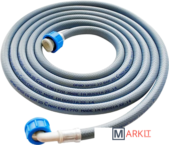 Шланг произведён из высококачественного ПВХ, без свинца. Cостоит из слоёв ПВХ, с армированиемCпосередине полиэфирной нитью и выполнен согласно всем нормам производителей стиральных машин.Сертифицирован по стандарту всемирной организации SGS.Соединение шланга происходит с помощью двух фитингов: 3/4" - прямого и углового посредством гаек с ребрами