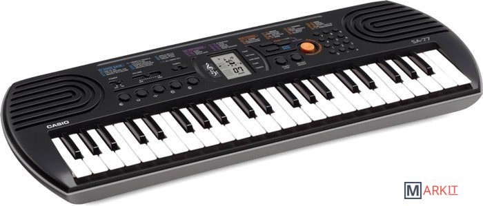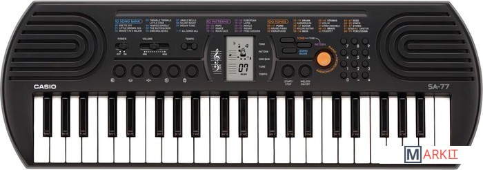 Модели SA-76 и SA-77 с 44 клавишами предлагают всем начинающим уникальные музыкальные возможности. 100 тембров, 50 стилей, встроенные композиции для обучения, новейший звуковой процессор с серьезной для таких синтезаторов 8-ми нотной полифонией, а также ЖК дисплей, помогающий с первых шагов разобраться в 2-х строчной нотной грамоте – все это делает инструмент отличным помощником для начинающего музыканта. Также в обеих моделях – SA-76 и SA-77 есть отдельная, вынесенная на корпус кнопка быстрого переключения между звуками фортепьяно и органа ( SA-76) и фортепьяно и язычкового органаоргана (SA-77). Обе модели имеют дизайн в стиле ретро, отличаясь между собой цветовой палитрой – SA-76 в ярко оранжевом , а SA-77 в серебристом корпусах. Но какой бы инструмент вы не выбрали, он идеально подойдет для вашего креативного ребенка.