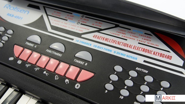 Синтезатор Rolsen RKB-4901 начального уровня подойдет как для людей, имеющих навыки игры на клавишных инструментах, так и для начинающих любителей музыки или для детей.16 разнообразных тембров и 10 стилей автоаккомпанимента воспроизводятся через пару мощных динамиков. Инструмент содержит 6 обучающих мелодий для тех, кто стремится улучшить свои навыки игры самостоятельно.