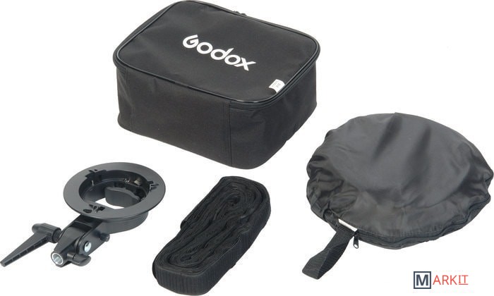 | Комплектация | Софтбокс Godox 8080 – 1 штАдаптер S – 1 штСоты (грид) – 1 штЧехол для софтбокса – 1 штСумка для переноски – 1 штГарантийный талон |