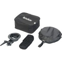 Софтбокс Godox SFGV8080 (80x80cm) предназначен для использования с накамерной вспышкой и разработан в для фотографов, работающих на выездных фотосъемках «в полях», а также для использования в небольших фотостудиях и домашних условиях. Комплект состоит из софтбокса, тканевого рассеивателя и кронштейна-адаптера S. Прочная компактная сумка размером 28х23х14 см отлично подходит для переноски и хранения.