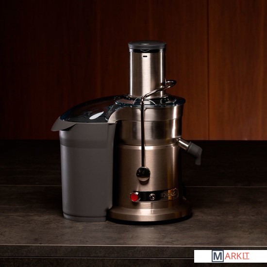 Мощный двигатель и 2 скорости работыДвигатель мощностью 1500 Вт и 2 скорости работы позволяют эффективно выжимать сок из мягких и твёрдых продуктов.Широкий загрузочный желобЗагрузочный желоб диаметром 84 мм позволяет загружать продукты крупными частями, реже разрезая их. Это сокращает время приготовления сока.Мелкоячеистый фильтр с нитрид-титановым покрытием ножейМелкоячеистый фильтр обеспечивает высокую степень фильтрации напитка,а нитрид-титановое покрытие ножей гарантирует их устойчивость к износу.
