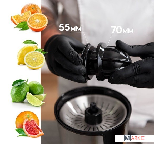 | Комплектация | 2 конуса диаметром 55 мм / 70 мм для крупных и мелких плодов |