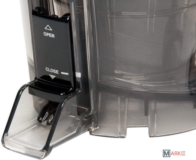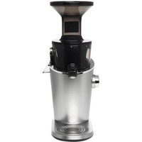 Вертикальная соковыжималка Hurom H-100 – новинка 2018 года. В отжимной корзине полностью отсутствует какой-либо металл. Вместо классического комплекта из сетки и обтирателя - в отжимной корзине используется набор из двух решеток, вставляющихся друг в друга. Форма отверстия для прохождения сока представляет собой вытянутые по вертикали арки. Благодаря такой форме, в сок попадает минимальной количество жмыха, а мойка аппарата после использования занимает меньше минуты и в большинстве случаев не требует применения щеток для чистки. Данная соковыжималка предназначена только для отжима соков и приготовления сорбетов из замороженных фруктов. Приготовление орехового молочка или пасты с ее помощью невозможно. В комплекте к соковыжималке есть две решетки - для отжима соков с мякотью и без. Сорбеты готовятся с помощью насадки для измельчения, которая устанавливается вместо обеих решеток. Двигатель имеет мощность 150 Вт, в комплекте книга рецептов на русском языке, краткие памятки по сокам и работе с аппаратом, толкатель и щеточка для очистки. На задней части корпуса аппарата размещен QR-код, с помощью которого можно проверить оригинальность соковыжималки.