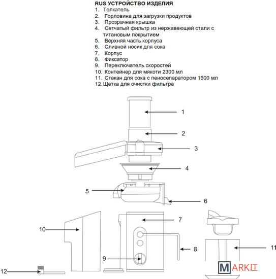 | Контейнер для мякоти | 1.7 л |