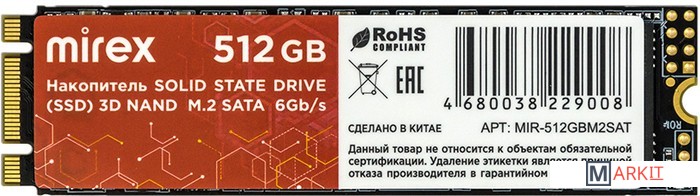Энергонезависимое запоминающее устройство Solid State Drive Mirex M2.SATA позволяет обеспечить компьютерную систему основной или дополнительной памятью. Подключается к стационарному ПК или ноутбуку через слот M.2 (NGFF) с поддержкой интерфейса SATA. Форм-фактор – 2280 (22 х 80 мм). Подходит для современных материнских плат и ноутбуков.Накопитель использует усовершенствованный контроллер и технологию памяти 3D NAND. Обладает высоким уровнем производительности: скорость обмена данными достигает 6 ГБ/с (750 МБ/с). Время наработки на отказ (MTBF) – 1,5 миллионов часов. Значительно повышает скорость работы системы, обеспечивая более высокую скорость запуска, загрузки и передачи данных.Создан с использованием передовой технологии NANDXtend™ECC для рационального использования ячеек памяти и увеличения срока службы накопителя. Поддерживает технологии TRIM, S.M.A.R.Tmonitor и NCQ, что значительно повышает производительность и стабильность передачи данных.