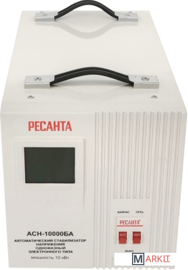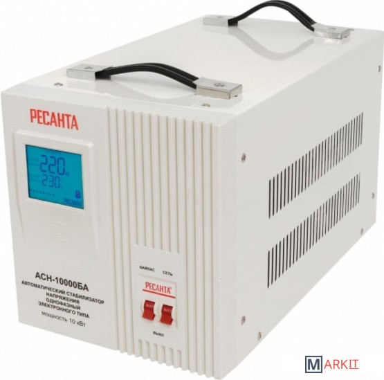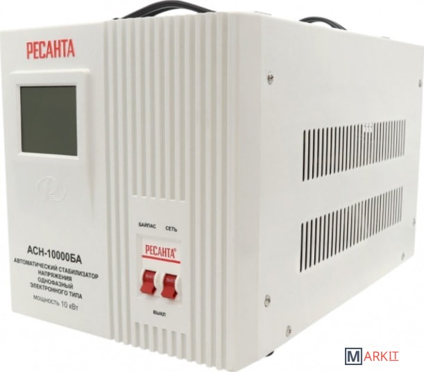 Стабилизатор напряжения Ресанта АСН 10000БА релейного типа предназначен для выравнивания входного напряжения и защиты приборов от перепадов напряжения с суммарной мощностью до 10 кВт. Работает с напряжением 220В с точностью до +/-8%. Устройство оснащено фильтрами сетевых помех, предотвращающими искажение частотной синусоиды, микропроцессорным управлением и цифровым индикатором напряжения, на котором отображаются параметры напряжения. Превышение пределов поддерживаемого входного напряжения автоматически отключает подачу питания. Прочный корпус защищает внутренние узлы аппарата от повреждений. Данный стабилизатор может обеспечивать стабильным питанием - телевизор, ресивер, DVD проигрыватель, кассовый аппарат, газовый котел.