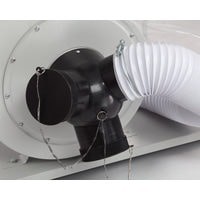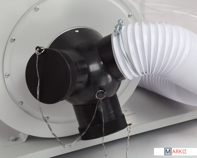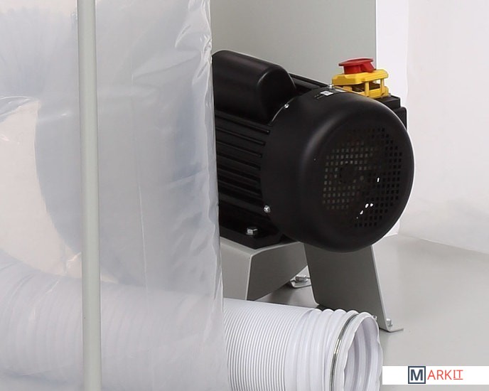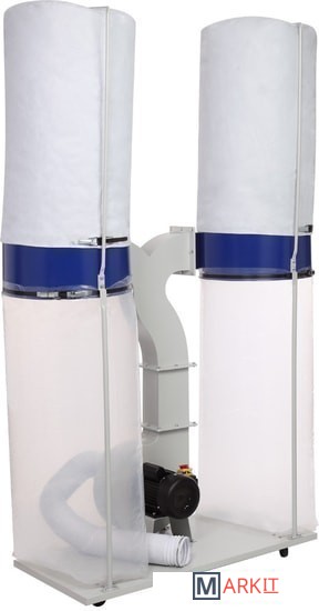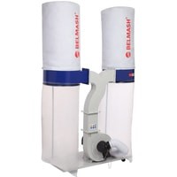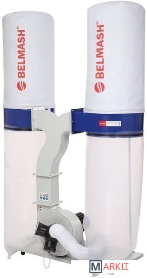 Это одна из самых мощных моделей в линейке вытяжных установок BELMASH – 2200 Вт. Рассчитана на подключение к сети 230В.Установка состоит из двух одинаковых секций: к разделительному корпусу зажимами присоединены фильтр-мешок сверху и стружкосборник – снизу. Все элементы конструкции закреплены на общем основании с помощью кронштейнов и стоек. Выходной патрубок корпуса установки соединяется с обеими секциями тройником.На входной патрубок вытяжки (Ø150 мм) устанавливается адаптер с тремя входами (Ø100 мм). Одновременно можно подключить три точки удаления отходов резания. Не нужные патрубки можно закрыть крышкой.Установка имеет внушительные размеры: высота – 2,25 м, ширина – 1,42 м. Но несмотря на это ее легко перемещать по мастерской за счет поворотных колес на основании. В комплект поставки входит 4-х секционный переходник.Вместо фильтр-мешков можно использовать картриджи BELMASH C510A или С510B.