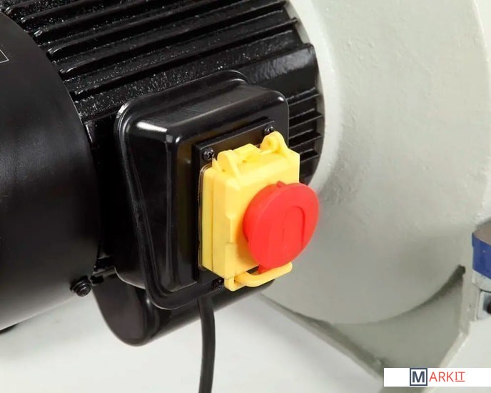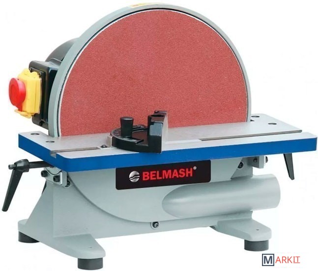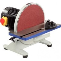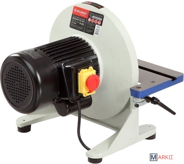Данная модель предназначена для шлифования диском. Она достаточно мощная – 0,8 кВт, простая и компактная.Исполнение настольное. Основание и корпус выполнены из чугуна. Рабочий стол тоже чугунный, имеет Т-образный паз для установки углового упора. Угол наклона стола – от -45 до +45 град.Абразивные материалы стандартные – диск диаметром 305 мм.Станок надежно удерживается на верстаке за счет опор-виброгасителей, но для дополнительной безопасности его можно закрепить. Для этого на опорах предусмотрены 4 отверстия. Двигатель асинхронный.