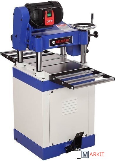 Станок предназначен для обработки древесины с целью придания ей необходимых размеров и форм – рейсмусования.Подача осуществляется автоматически. Скорость зубчатого вала подачи регулируется и составляет 5 и 9 м/ мин, принимающий вал – цельный.Для снижения трения заготовки, на рабочем столе установлено два настольных ролика. Дополнительные столы также являются роликовыми.Установлен трех ножевой строгальный вал, который можно заменить на вал helical.В комплекте имеется специальное приспособление для установки ножей.Осуществлена система перемещения станка. Патрубок для отвода стружки имеет диаметр 100 мм. Со стороны подачи установлен ряд защитных упоров, предотвращающих отдачу заготовки во время процесса строгания.