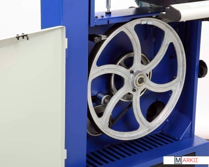 Ленточнопильный станок BELMASH WBS-355 предназначен для обработки древесины, а также, фанеры, ДВП, МДФ, ДСП и т.п. пилением с целью придания им необходимых форм и размеров, с ручной подачей заготовки.Станок оборудован асинхронным двигателем с воздушным охлаждением S1.При соответствующей наладке на станке можно выполнять следующие виды обработки:пакетное резание;резание по кривой;разрезание на заготовки заданной длины;продольное резание;поперечное резание;резание под углом.Мощность устройства составляет 1100 Вт.Рабочий стол изготовлен из чугуна.Максимальная габарит обрабатываемой заготовки составляет Ш×В - 345×220 мм.Станок имеет две скорости пильного полотна: 1 - 370 м/мин., 2 - 800 м/мин.Для подключения вытяжной установки придусмотренно три патрубка диаметром - 49/74/79 мм.На рабочий стол устанавливаются параллельный и угловой упоры.Станок соответствует требованиям технических регламентов:ТР ТС 010/2011 «О безопасности машин и оборудования»;ТР ТС 004/2011 «О безопасности низковольтного оборудования»;ТР ТС 020/2011 «Электромагнитная совместимость технических средств».