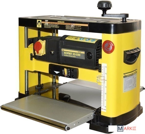 Особенности Корвет-22-330:Станок комплектуется электромагнитным пускателем.Для безопасной работы станок оснащен антиотбрасывателями.Ограничитель глубины строгания широких заготовок для защиты станка от перегрузки. Тепловая защита двигателя.Имеются верхние ролики для облегчения возврата заготовки на приемный стол.Патрубок для подключение пылесоса.Удобный индикатор глубины строгания.Автоматическая подача заготовки осуществляется двумя обрезиненными роликами.Ножи с двухсторонней заточкой.