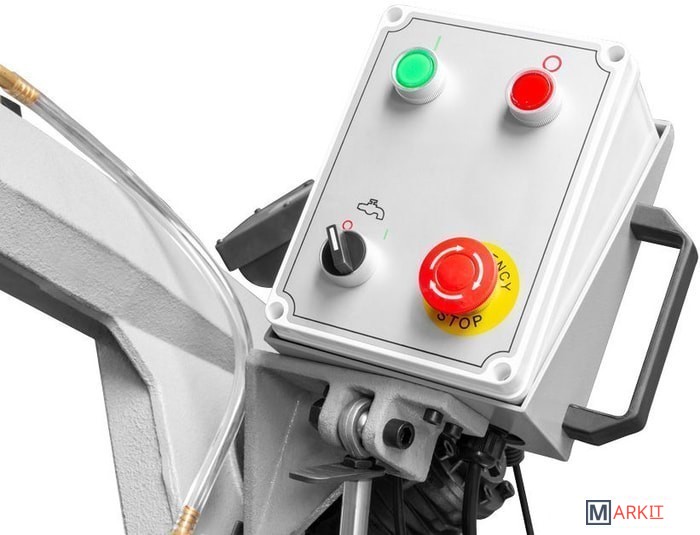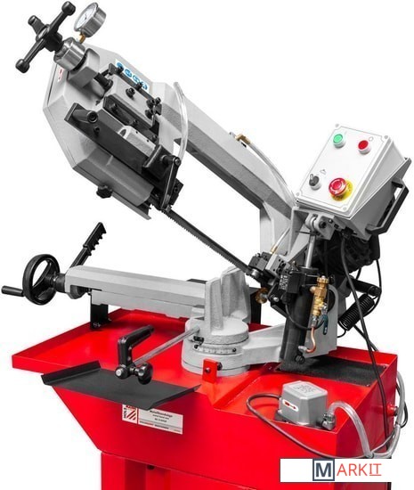 | Комплект поставки | - биметаллическая пильная лента;- опорная рама;- упор для заготовки;- концевой выключатель;- узел охлаждения;- манометр. |