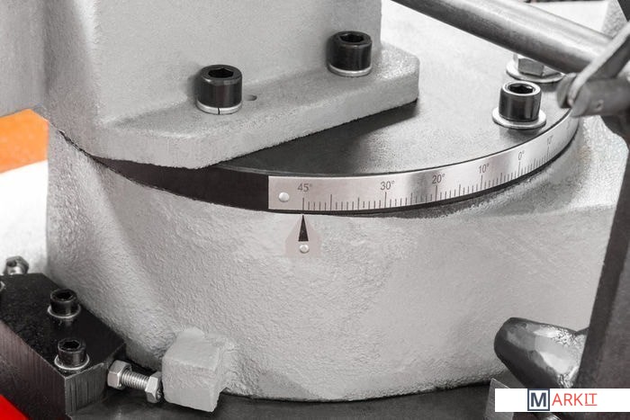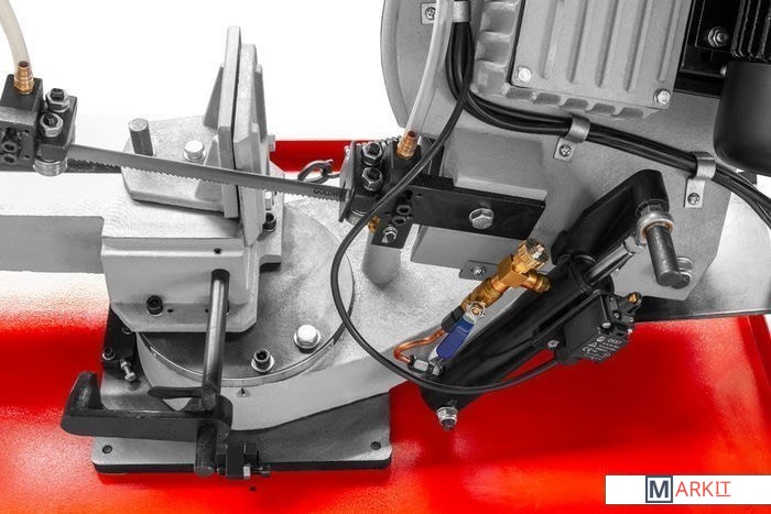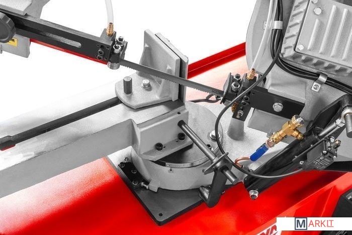 - Занимает мало места благодаря приспособлению для перемещения;- Автоматический концевой выключатель в стандартной комплектации;- Прочная литая конструкция с направляющими пильной ленты на шарикоподшипниках;- Циклон для улавливания стружки и насос подачи смазки;- Поворотные профессиональные тиски и упор для заготовки;- Макс. размер резки, круглое сечение под углом 90° - 205 мм;- Макс. размер резки, круглое сечение под углом 45° - 140;- Макс. размер резки, круглое сечение под углом -45° - 150;- Макс. размер заготовки прямоугольного сечения при распиловки под углом 90° в мм - 215x205 мм;- Макс. размер заготовки прямоугольного сечения при распиловки под углом 45° в мм - 140x90 мм;- Макс. размер заготовки прямоугольного сечения при распиловки под углом -45° в мм - 100x200 мм;- Скорость опускания пильной рамы бесступенчато регулируется с помощью гидравлического цилиндра.